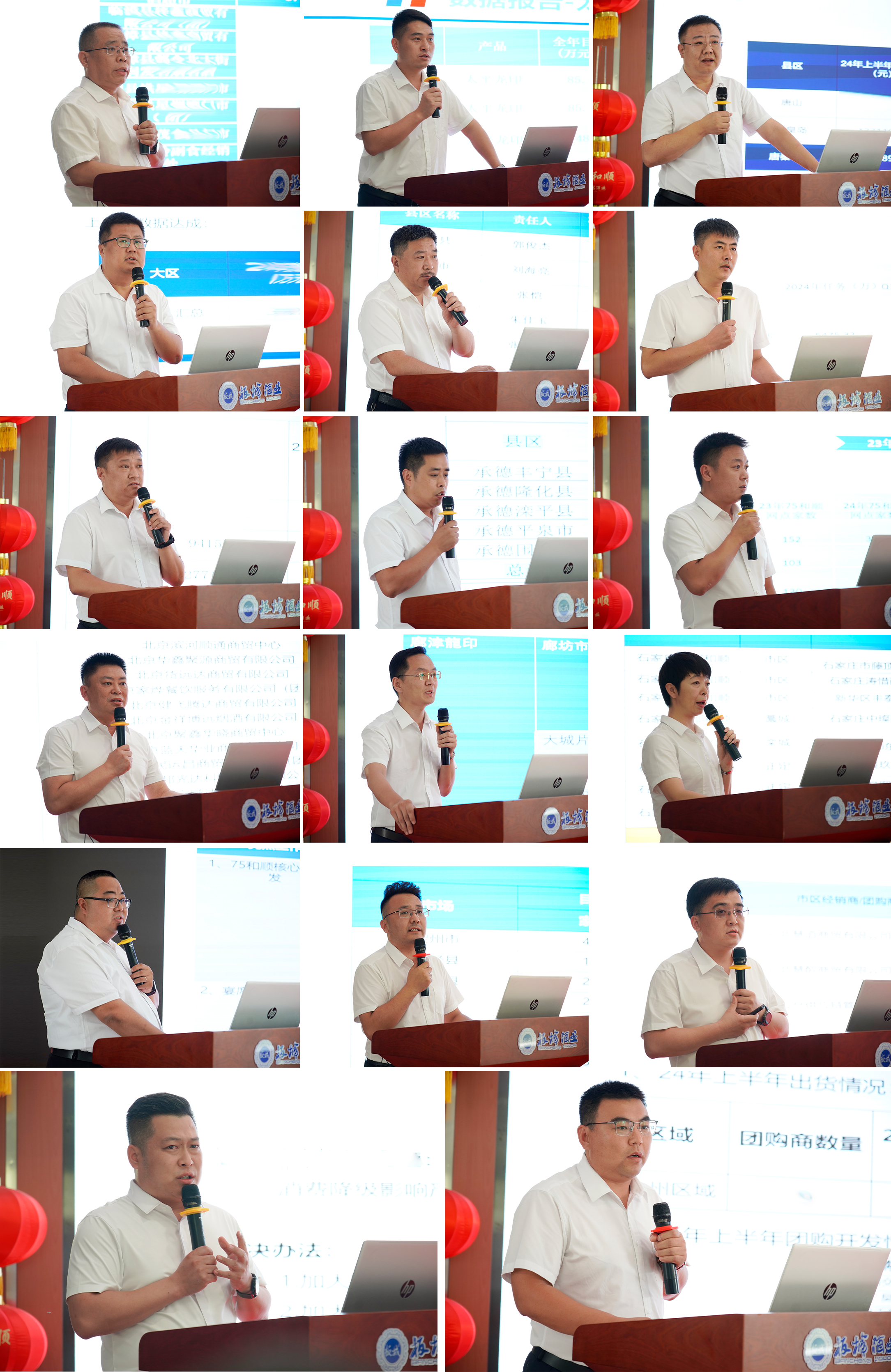 板城酒業(yè)銷售商務(wù)部經(jīng)理段瑞明作本年度上半年數(shù)據(jù)匯報(bào),通過整體數(shù)據(jù)展示、各區(qū)域市場數(shù)據(jù)對比,對各區(qū)域的銷售情況深刻剖析,指出銷售中存在的工作亮點(diǎn)與問題。
