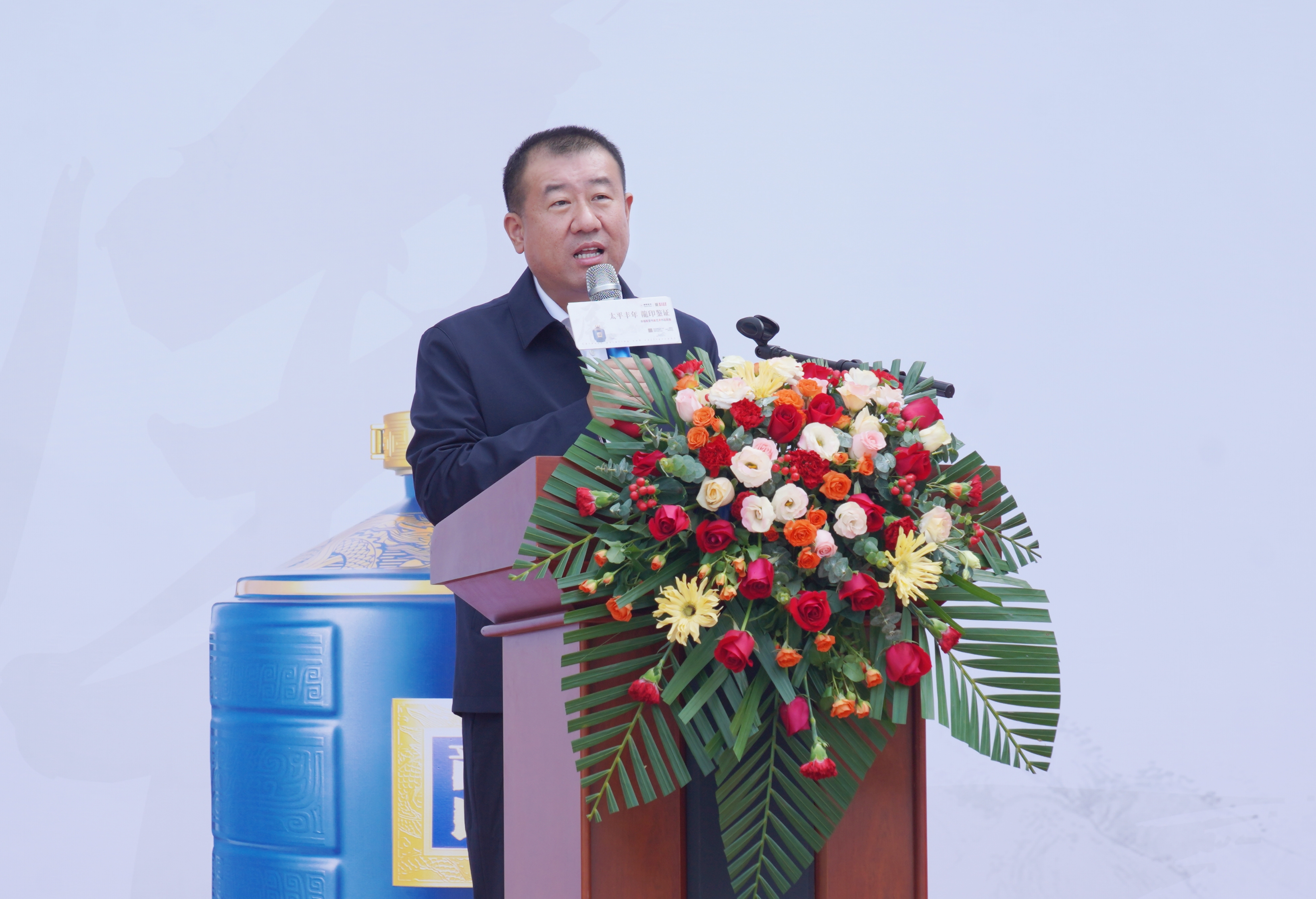 板城酒業(yè)黨委書記、總經(jīng)理張春生發(fā)表講話,書畫藝術(shù)歷史悠久,源遠(yuǎn)流長,是中華民族的文化瑰寶,在弘揚(yáng)民族精神,振興民族文化和滿足人民群眾日益增長的精神文化需求方面發(fā)揮著重要作用。