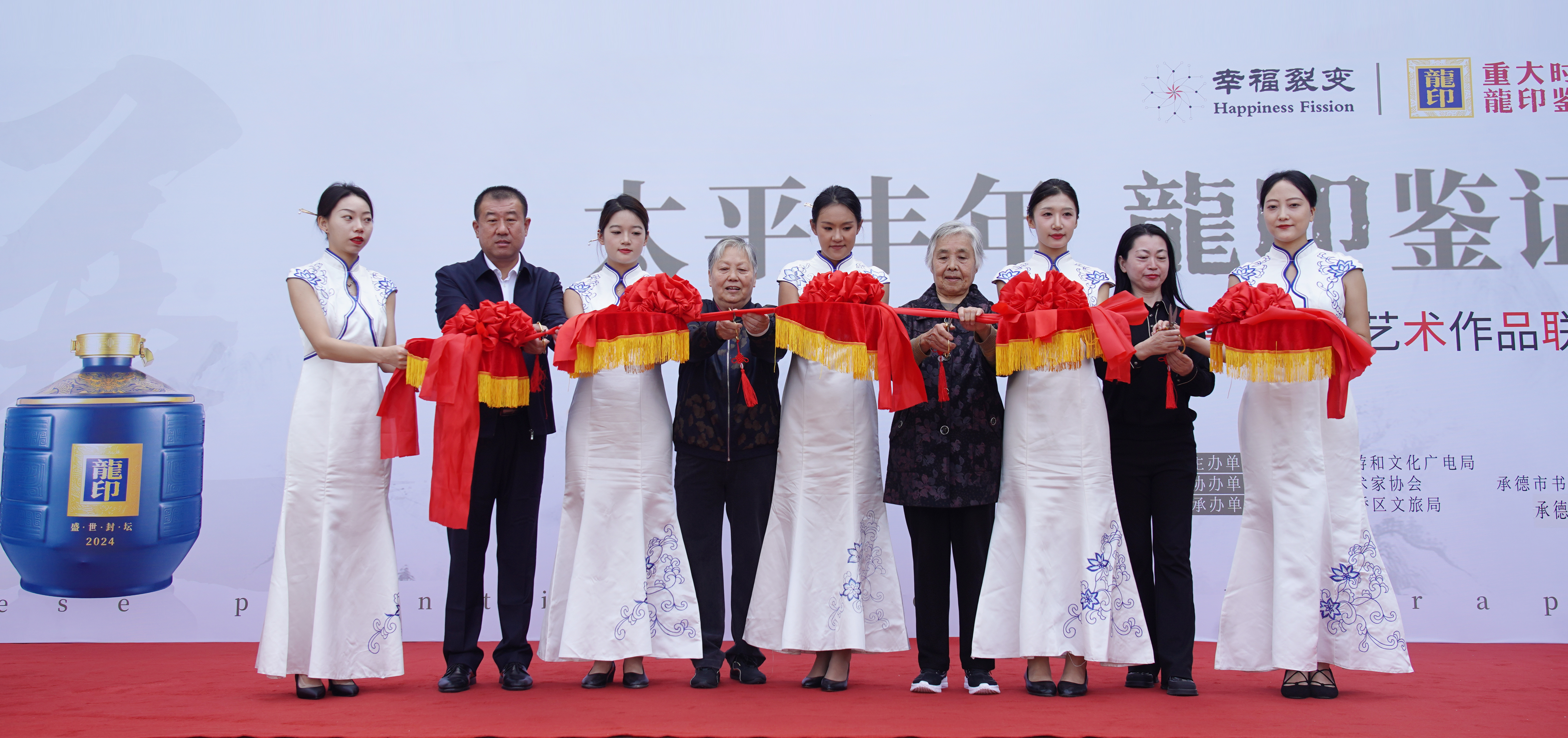 太平豐年,龍印鑒證;9月19日,由承德縣旅游和文化廣電局、板城酒業(yè)主辦;承德市美術(shù)家協(xié)會、承德市書法家協(xié)會協(xié)辦;承德市雙橋區(qū)旅游和文化局、承德縣文化館承辦的“太平豐年龍印鑒證——幸福裂變書畫藝術(shù)作品聯(lián)展”活動盛大開幕。
