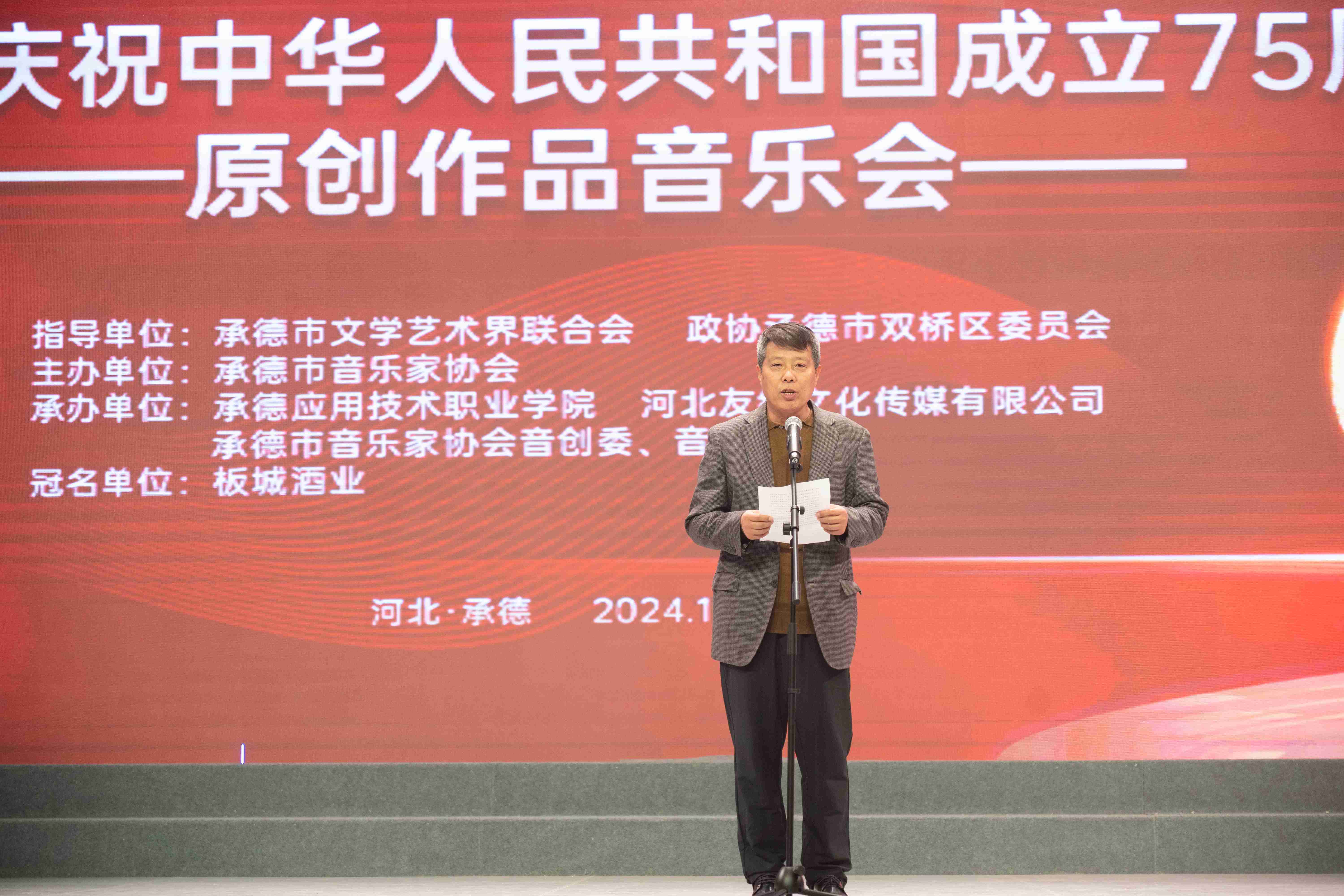 謳歌新時(shí)代、禮贊新中國;10月23日,為慶祝中華人民共和國75周年華誕,板城酒業(yè)聯(lián)合承德市音樂家協(xié)會(huì)舉辦“太平豐年、龍印鑒證——承德市慶祝中華人民共和國成立75周年原創(chuàng)作品音樂會(huì)”,用音樂歌頌偉大的祖國和偉大的黨。
