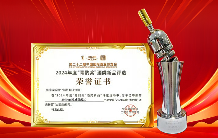 板城酒業(yè)-龍印30榮膺2024年度“青酌獎(jiǎng)”