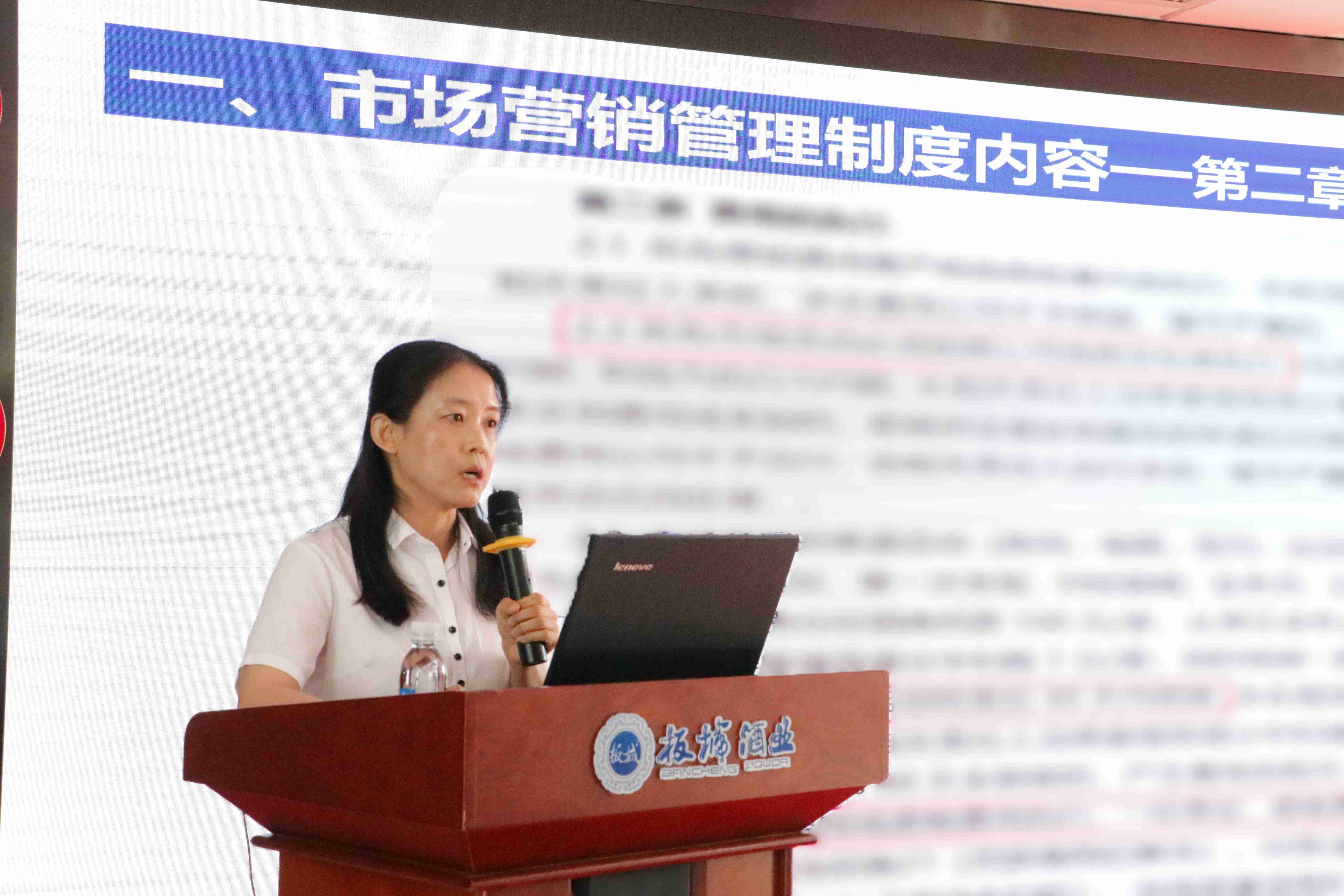 板城酒業(yè)營銷管理部主管金百靈講解公司規(guī)章制度,督促大家共同營造風清氣正的工作氛圍,提升公司資源的投入效能,建立良性有序的市場秩序,堅決保障公司戰(zhàn)略有效落地。