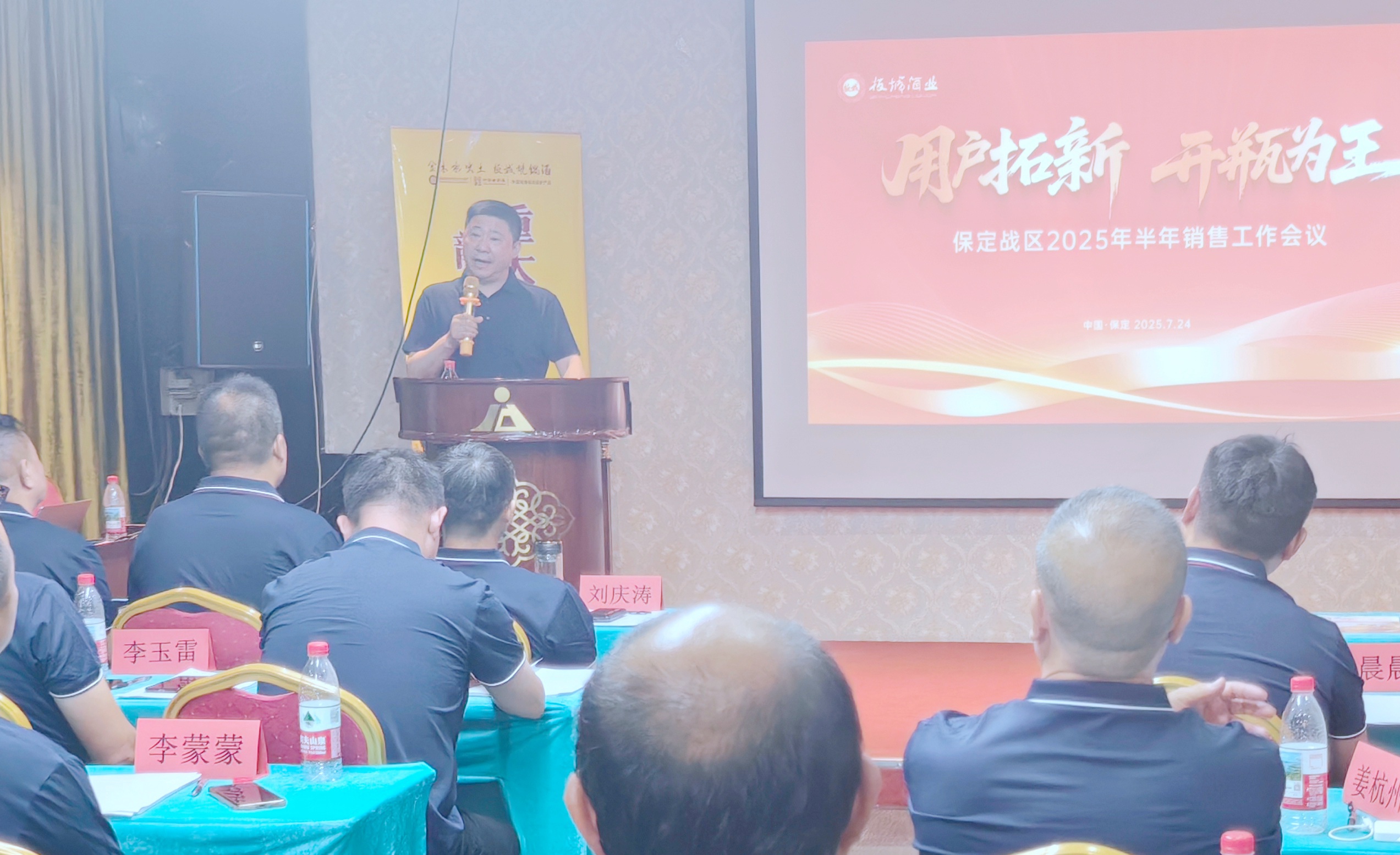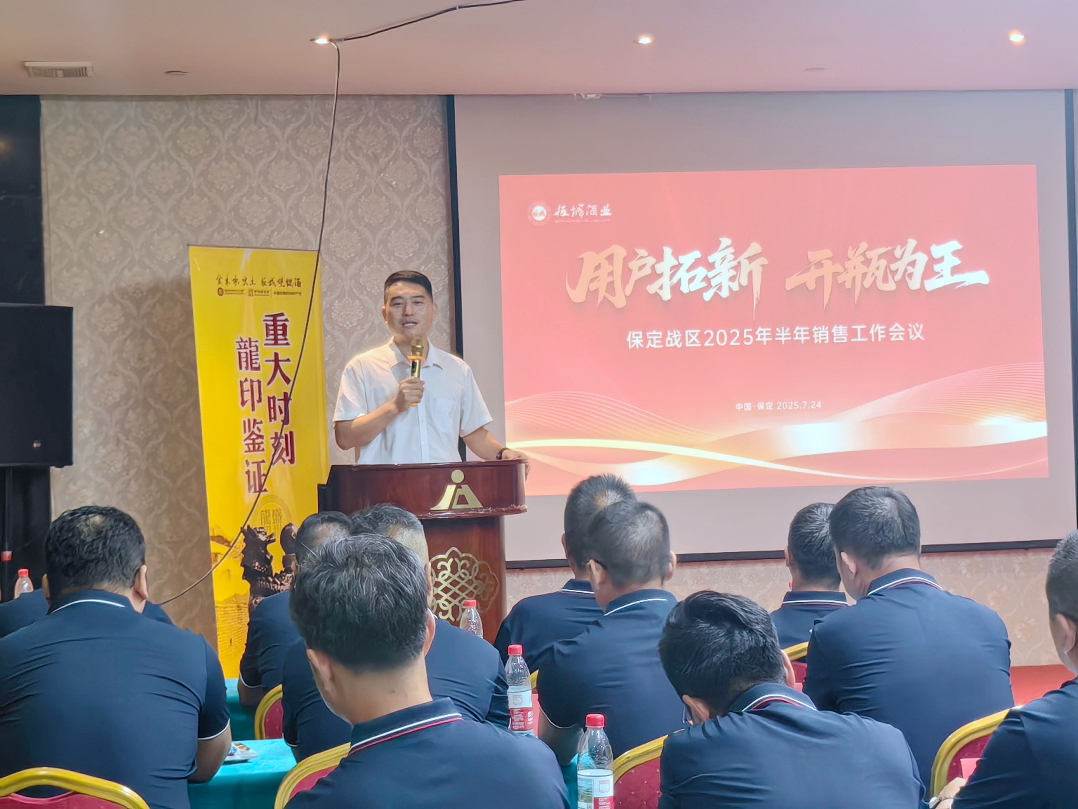 板城酒業(yè)銷售常務副總經(jīng)理許樹鋼,保定戰(zhàn)區(qū)經(jīng)理賈亞飛,業(yè)務經(jīng)理、業(yè)務團隊及經(jīng)銷商、團購商齊聚一堂,共商發(fā)展大計,吹響2025年下半年度的沖鋒號角。