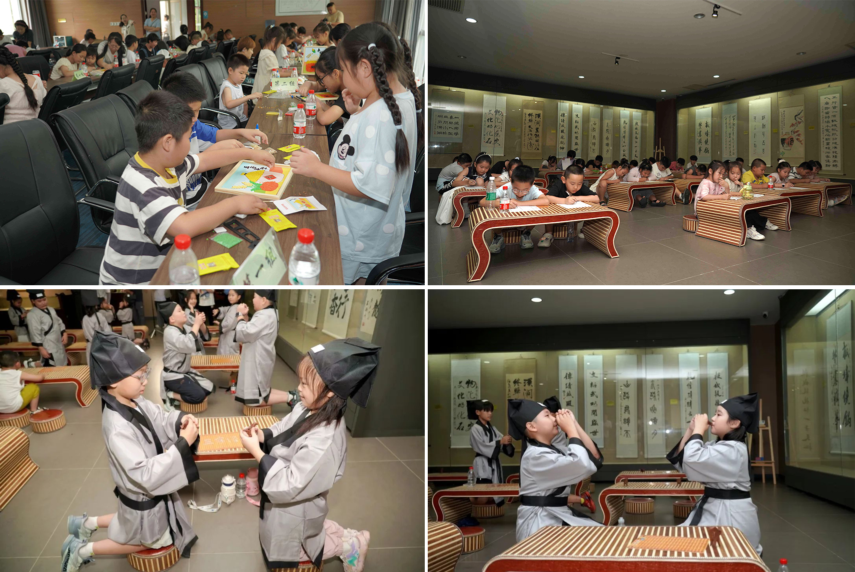 實(shí)踐點(diǎn)燃創(chuàng)造火花。在多媒體廳,孩子們巧手拼貼五谷雜糧,創(chuàng)作寓意深遠(yuǎn)的糧畫作品,于指尖再次感悟“粒粒皆辛苦”。字畫廳則化作文雅殿堂,孩子們在導(dǎo)師引領(lǐng)下,研習(xí)傳統(tǒng)酒禮中的賓主之道、長幼之序與君子之風(fēng),舉手投足間傳承著文明的儀軌。