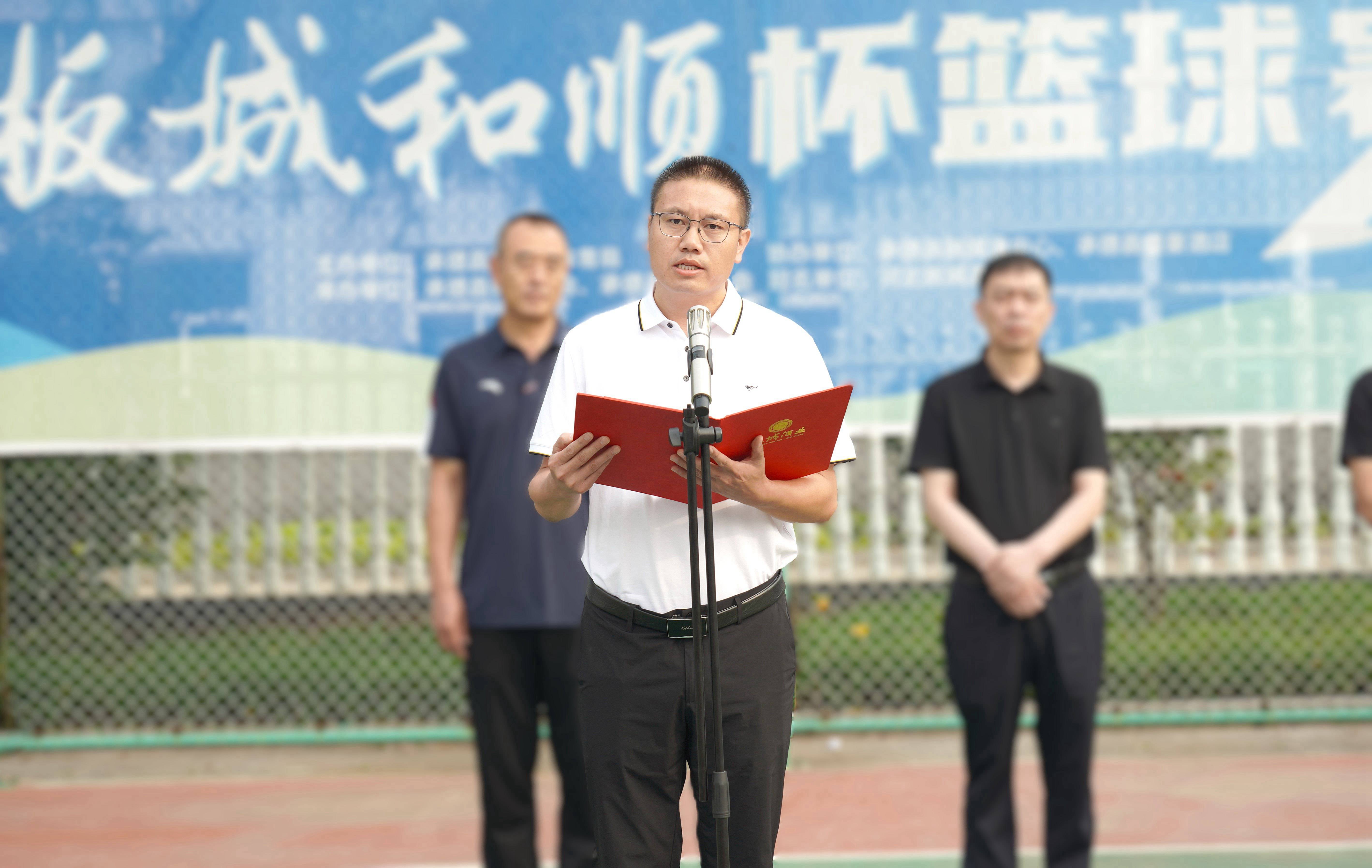 承德縣教育和體育局體育工作指導(dǎo)中心主任朱瑞東發(fā)表致辭,朱主任講到:“縣教體局聯(lián)合板城酒業(yè)持續(xù)舉辦體育賽事活動(dòng),連續(xù)舉辦七屆‘板城和順杯’籃球賽事,為承德縣全民健身提供了重要平臺(tái),縣教體局將持續(xù)開展全民健身活動(dòng),搭建全民健身平臺(tái),開展形式多樣的體育活動(dòng),讓承德縣人民參與多種體育賽事。”